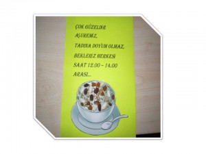 13.11.2013 Çarşamba günü okul bahçemizde aşure dağıtılacaktır.(Saat 12.00-14.00 arası)Tadına bakmak isteyenleri bekleriz.